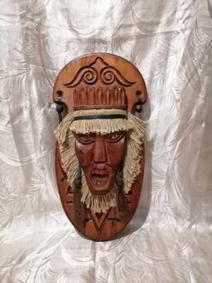 Художественная резьба по дереву. Маска шаман. Алтайская. Из дерева кедра. Размер 41 см 25см.